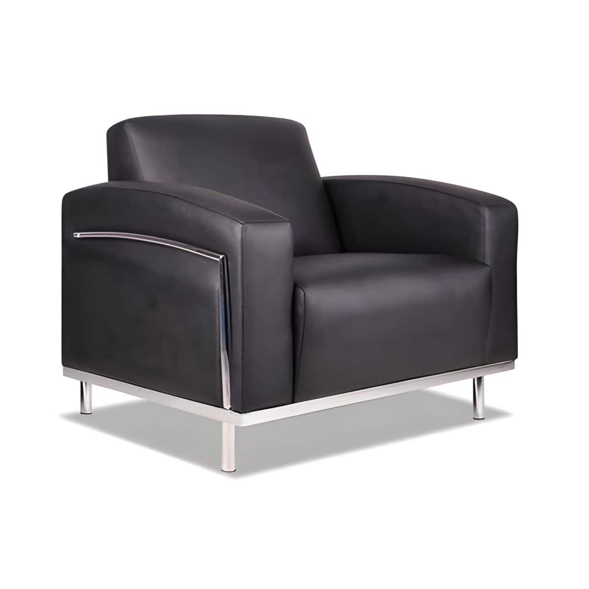 F111 single seater office sofa with black bonded leather upholstery and stainless steel frameF111 Single Seater Office Sofa
