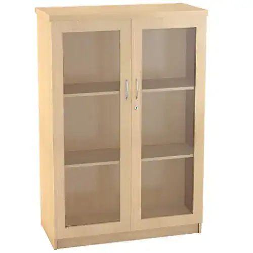 This Glass Door Cabinet has 2 Shelves and it is Lockable.
