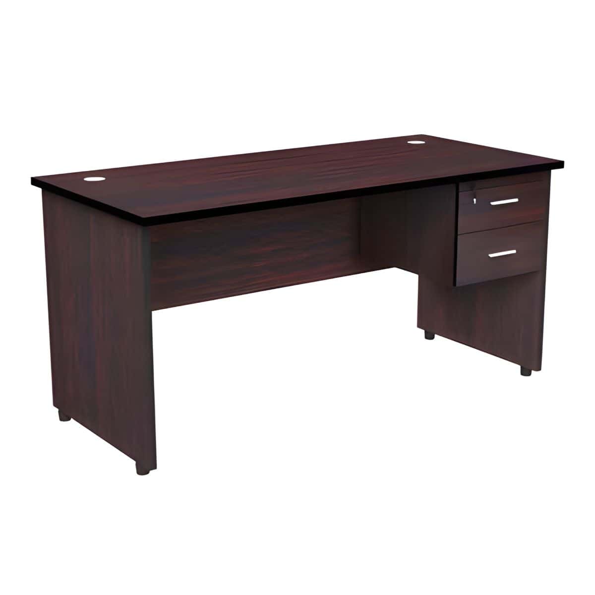 Constructed from durable office-grade materials, the desk is designed to withstand daily use in busy professional environments. The mahogany melamine surface resists scratches and wear, therefore maintaining its professional appearance over time.