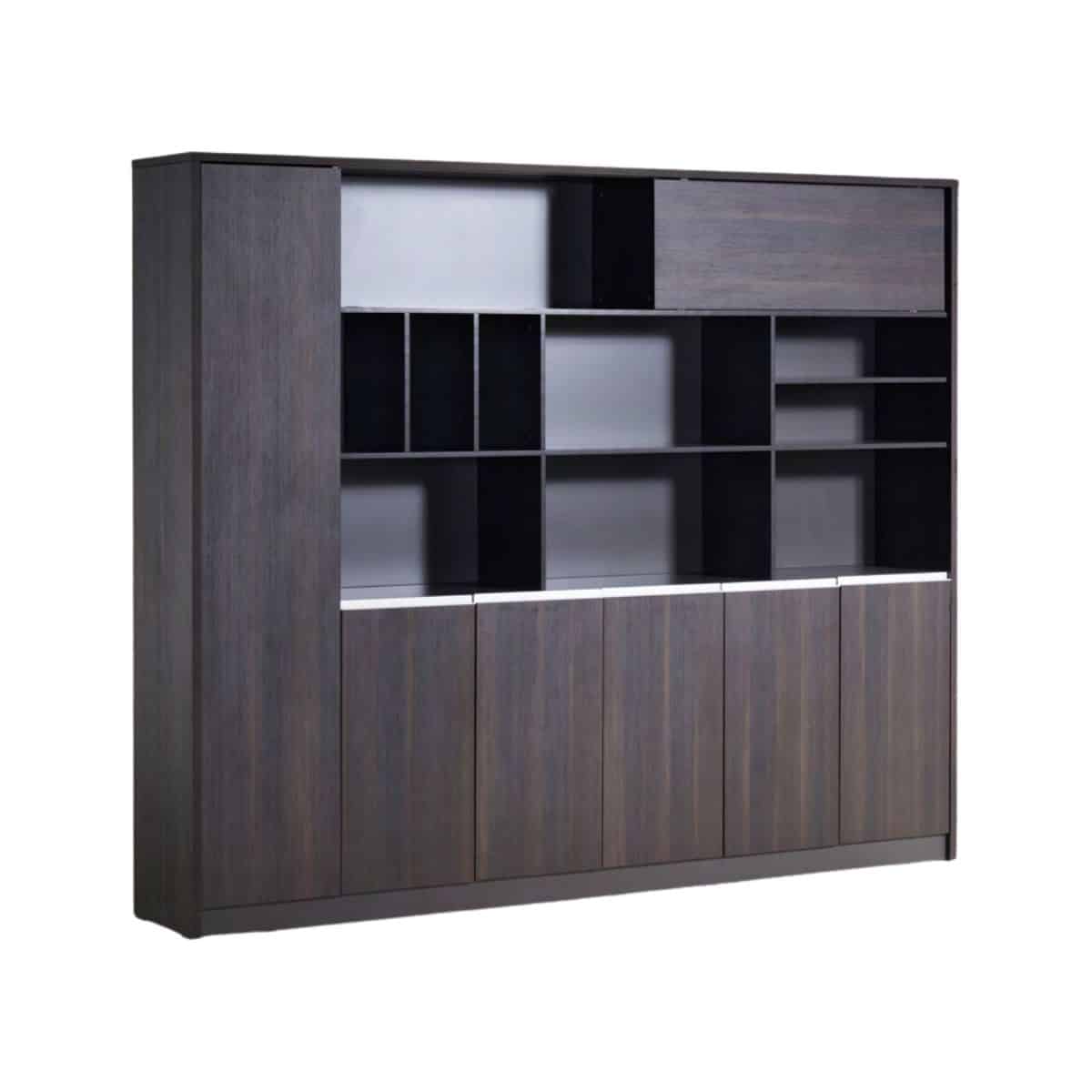 As a result, the dark oak wall unit is ideal for executive offices, boardrooms, reception areas, and administrative workspaces. Its spacious storage capacity makes it suitable for organising documents, files, and office accessories while enhancing the professional appearance of the workspace.