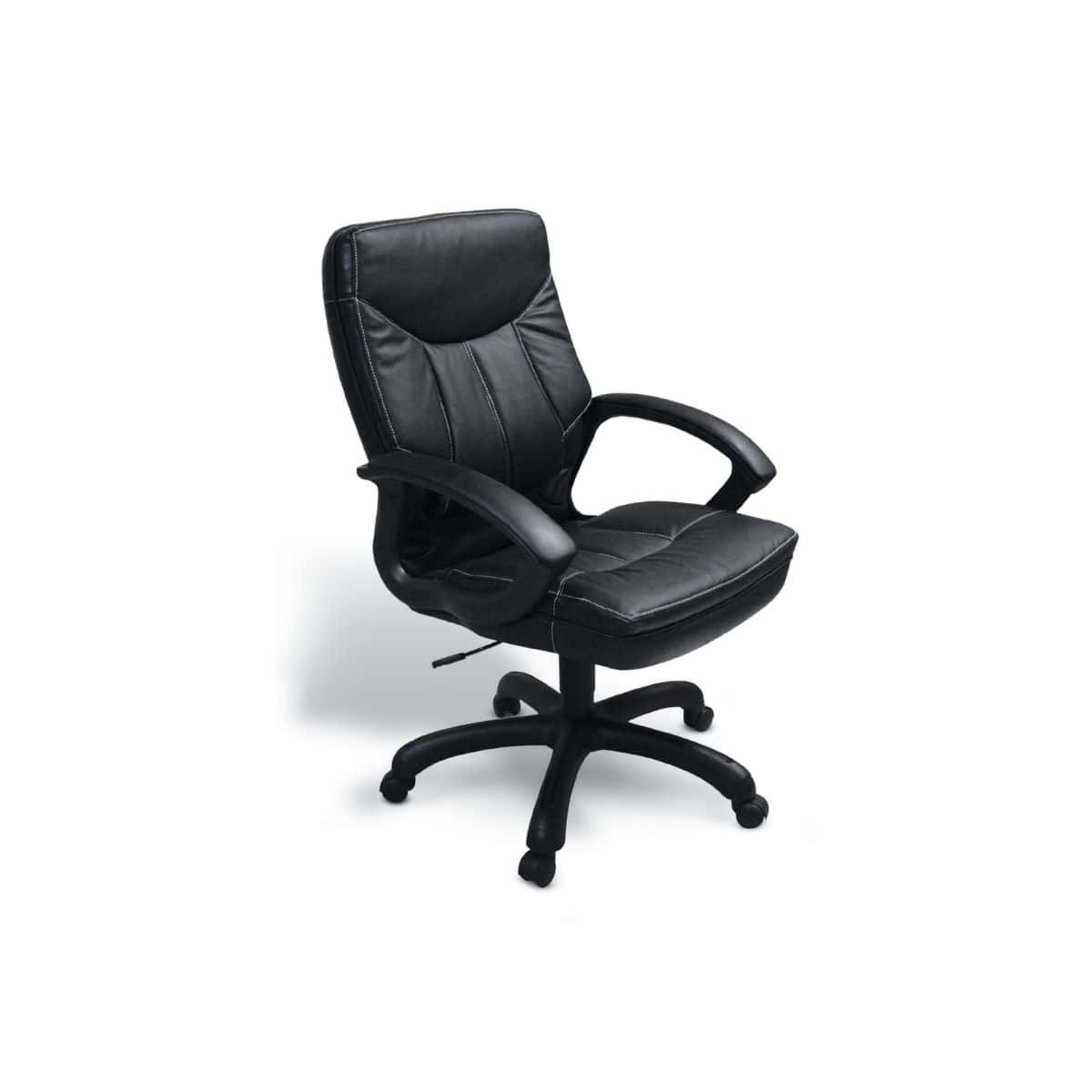 The padded seat and supportive mid backrest deliver firm and consistent comfort. The stitched panel design adds structure while enhancing the overall look of the chair. Padded C armrests provide additional forearm support and assist in maintaining balance while seated. The armrests also contribute to the executive styling of the chair without adding unnecessary bulk.