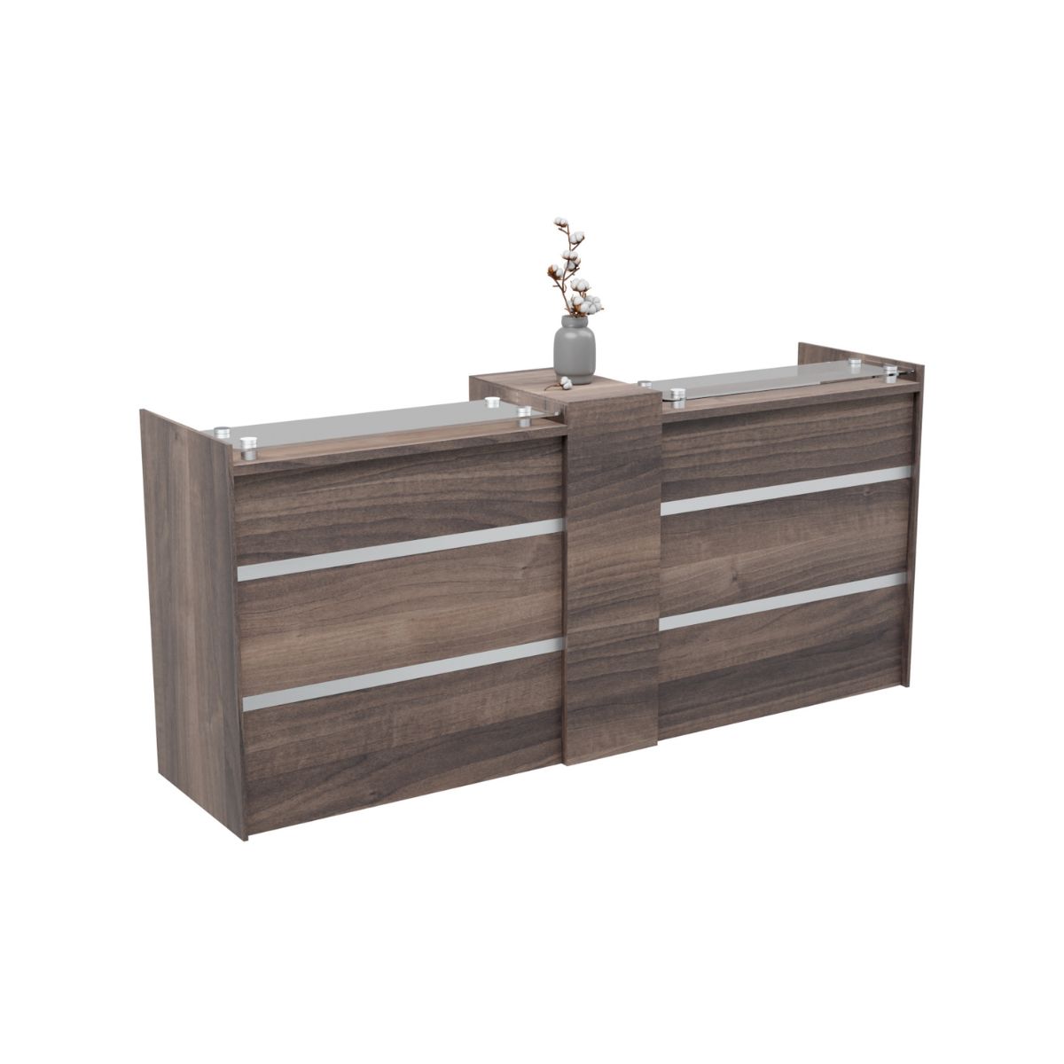 In addition, the 10mm tempered glass top enhances the overall design. It provides a durable working surface for daily use. The raised glass detail adds depth and creates a premium, contemporary appearance. As a result, your reception area immediately feels more refined.